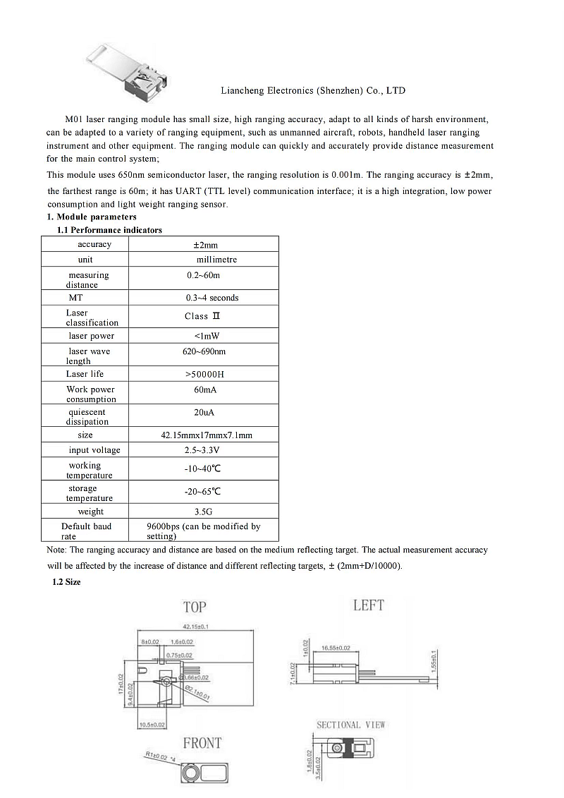 LamaPLC: M01 - V0.4 Laser ranging sensor with UART communication